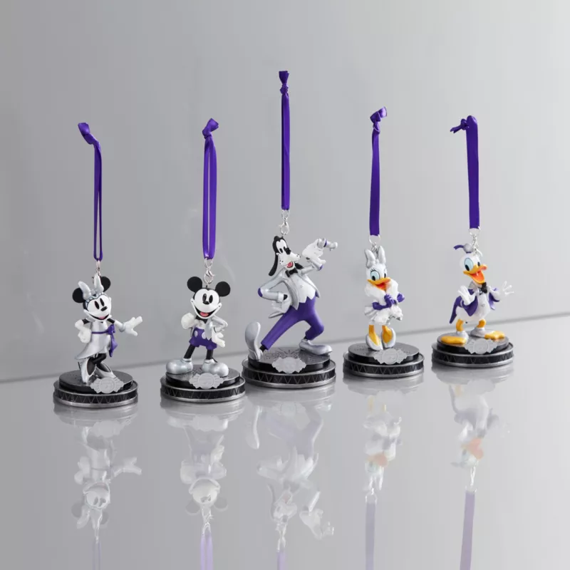 The latest addition to the Sketchbook Ornament Collection, this set of five figural ornaments are the perfect addition to round out your Disney100 collection. Dressed to the nines with iridescent-coloured accents, Mickey, Minnie, Donald, Daisy and Goofy will make every season magical.