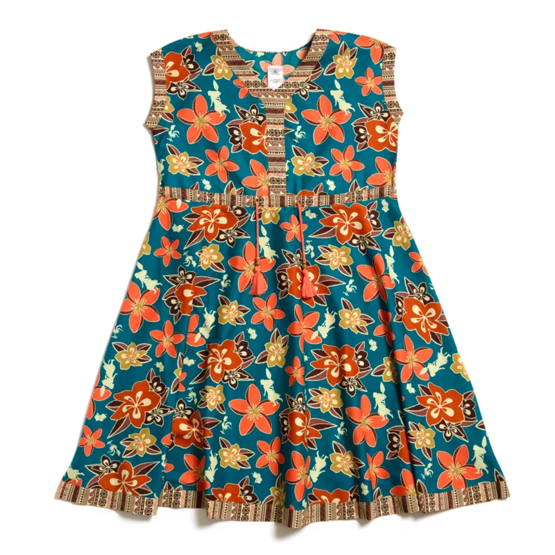 You’ll enjoy sailing the South Seas in style in this Moana dress. Featuring contrasting trims and silhouette-style character artwork, the floral dress is sure to look chic.