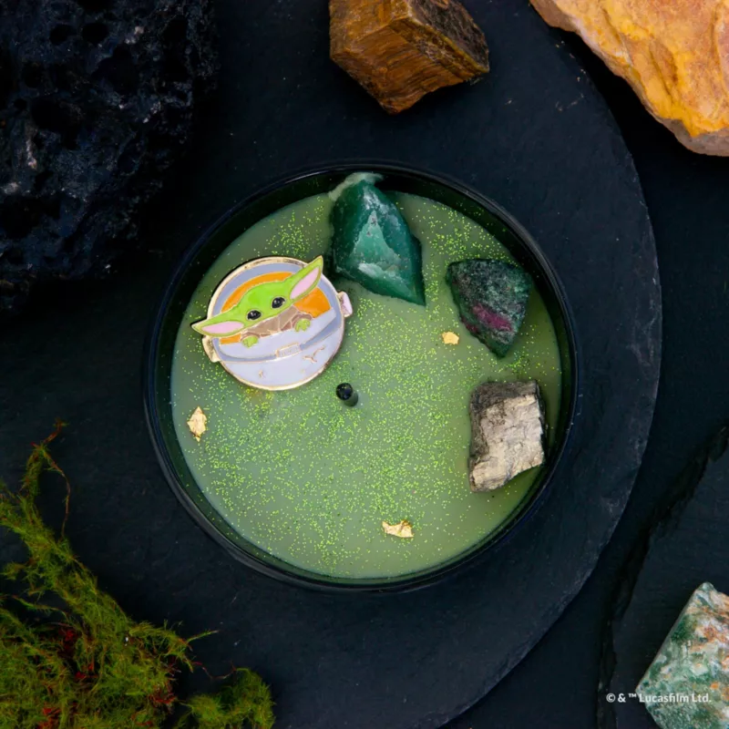 Deliver this precious cargo into your Star Wars collection with the Limited Edition Grogu™ candle. Gorgeously decorated with an adorable enamel pin of baby Grogu™ in his safety pod.