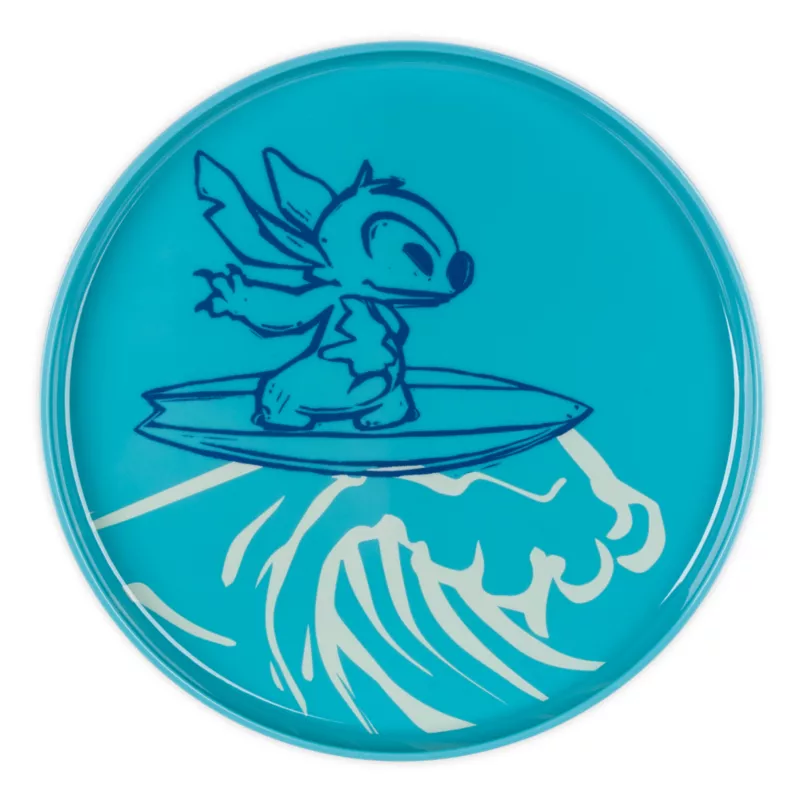 Serve up some galactic goodness with this Stitch plate set. Each of the four sturdy melamine plates features a different design with a summer loving Stitch and one with his sweetheart Angel.